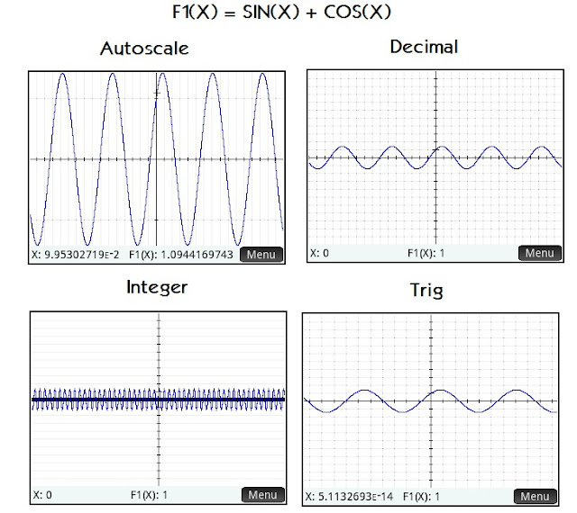 On the Plot screen, you can select pre-programmed plot setups: Autoscale (my favorite), Decimal, Integer, or Trig.